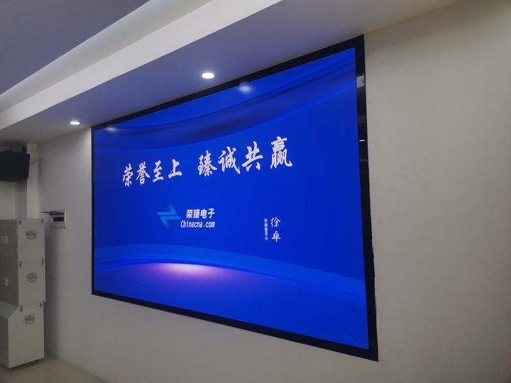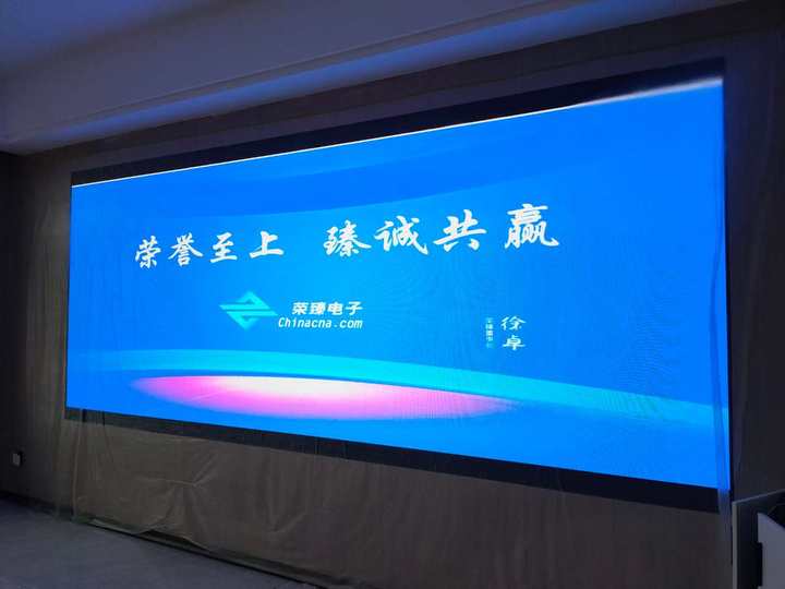 本項目案例是我公司(榮臻電子)在東北地區某公司安裝的P2.5LED小間距全彩顯示屏項目,項目的具體展示效果如下: